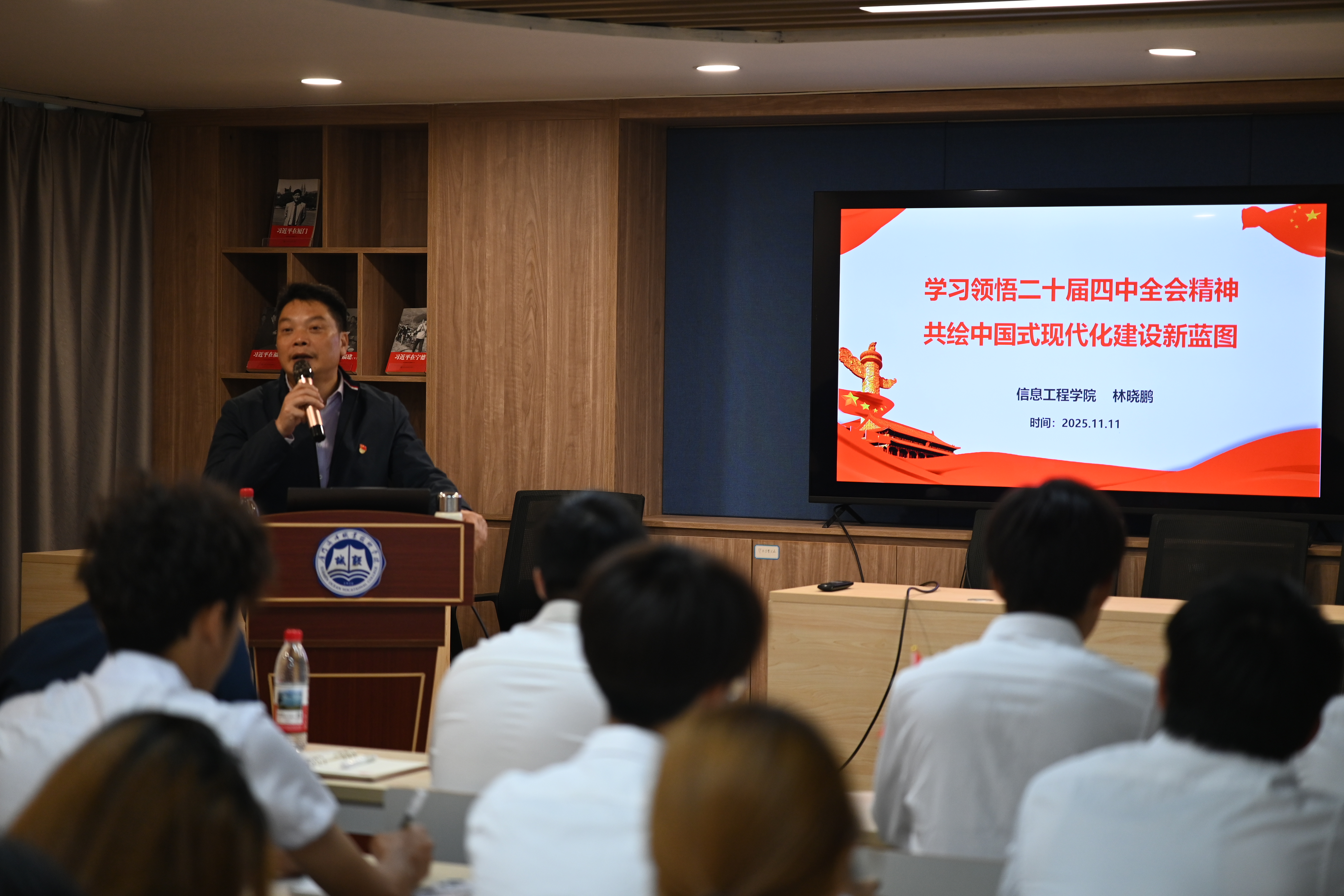 11月11日的开班仪式之后,学院党总支书记林晓鹏以《学习领悟党的二十届四中全会精神,共绘中国式现代化建设新蓝图》为题,引导学员筑牢理想信念根基,勉励大家以严格标准要求自己,提升综合素质,努力成长为有理想、敢担当、能吃苦、肯奋斗的新时代青年。