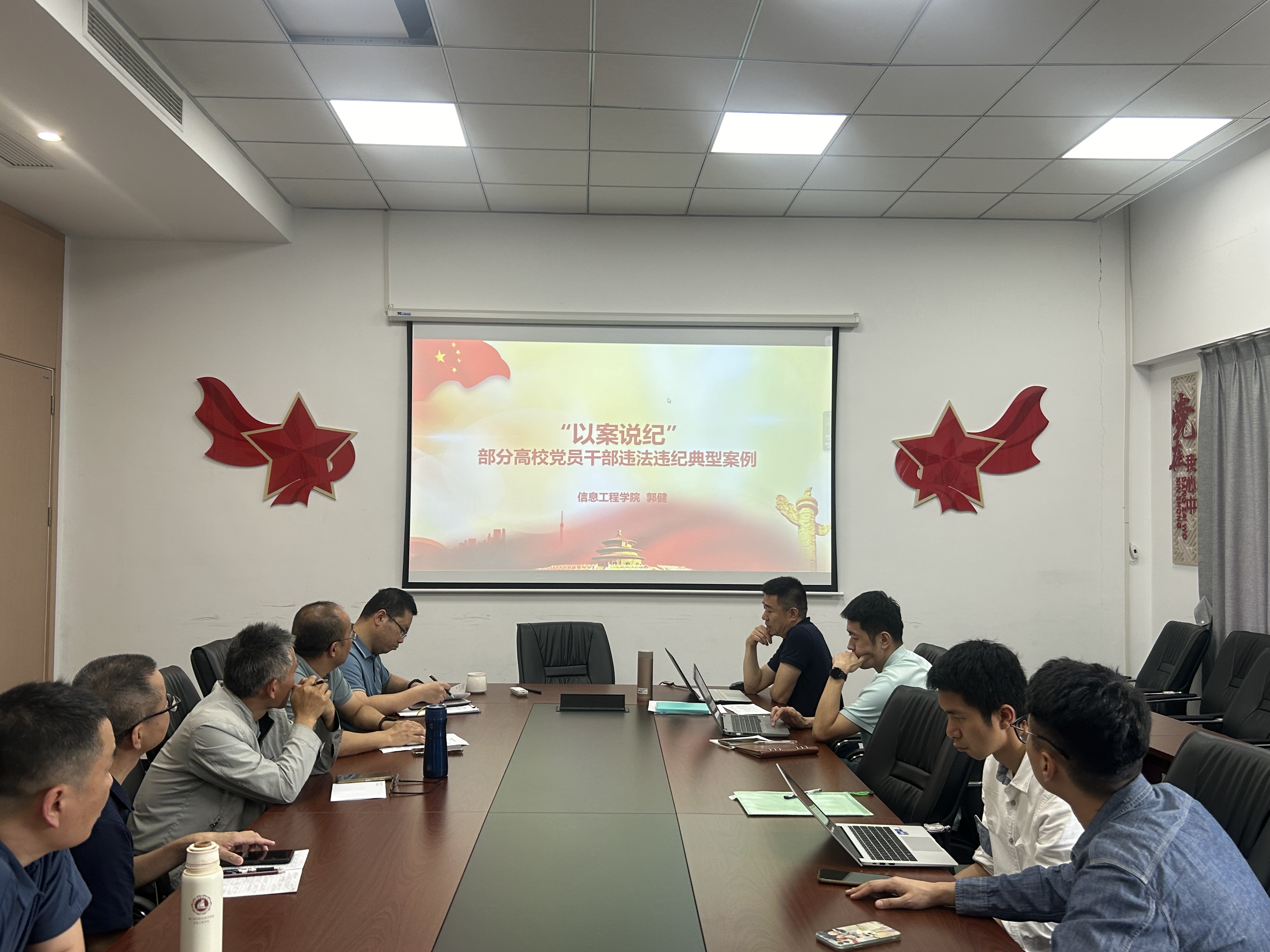 为推动党纪学习教育有序开展、走深走实,促进广大党员干部自觉参与、主动融入、积极践行,努力在学纪、知纪、明纪、守纪上下功夫。5月13日,信息工程学院副院长郭健围绕《中国共产党纪律处分条例》开展主题党课教育,各教研室主任、专业负责人参加。