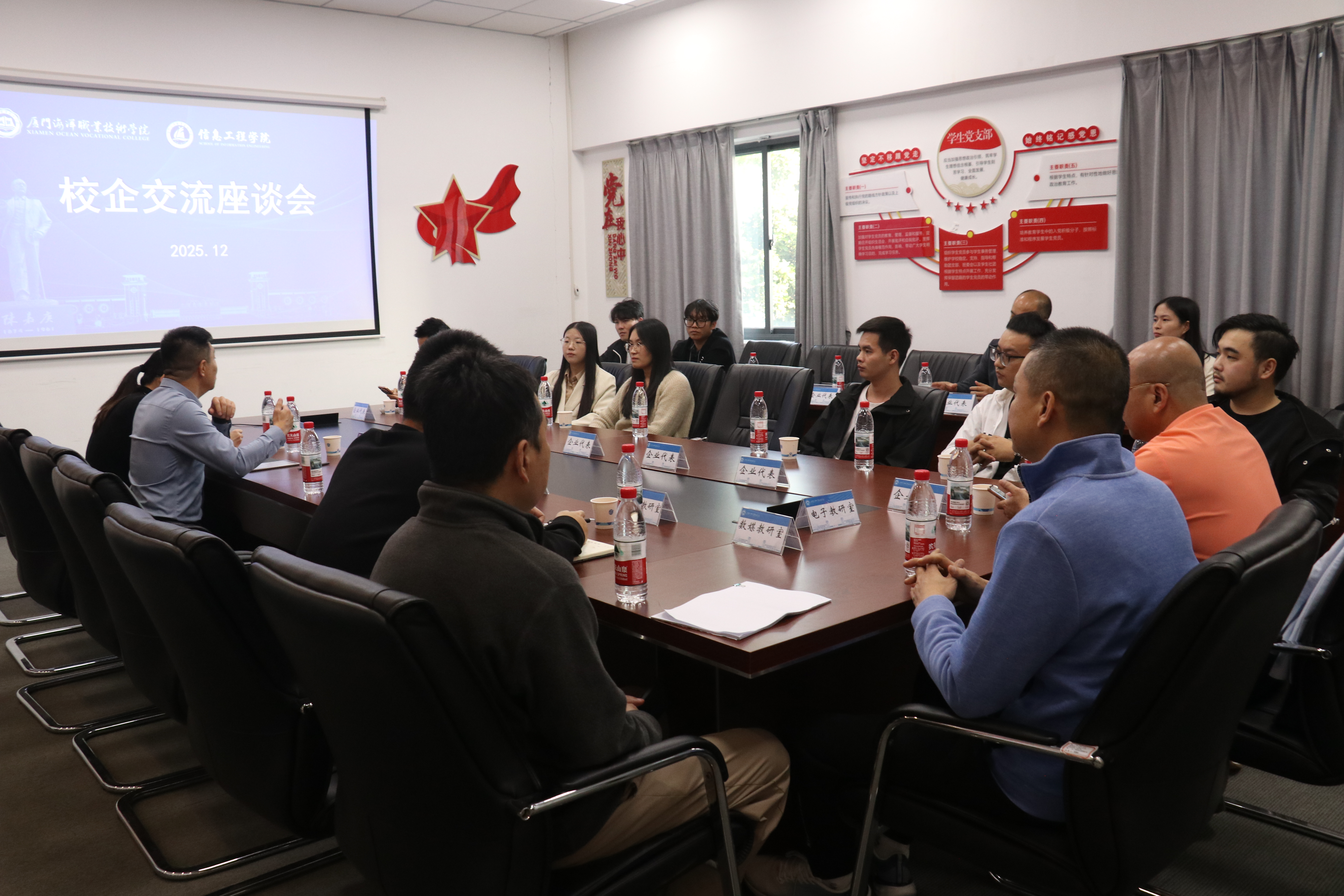 招聘会结束后,学院组织召开了校企交流座谈会。7家企业代表与学校就创处李芳老师、学院党政领导围绕人才培养、实习就业、校企合作等内容进行了深入交流,为进一步拓展就业渠道、优化协同育人机制凝聚了共识。
