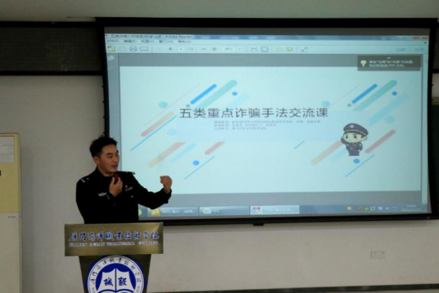 徐警官简单介绍了近年来电信网络诈骗手段,主要包括网络游戏交易诈骗、刷单返利诈骗、网络赌博杀猪盘诈骗等,并用数据说话,以案例为据,通过精确的数字和高校园区的案例,准确、生动地揭示了不法分子行骗的伎俩,细致地分析了学生上当受骗的客观原因,与同学们展开互动,积极解答同学们提出的问题,帮助同学们更加全面、深刻地认识电信网络诈骗手法。