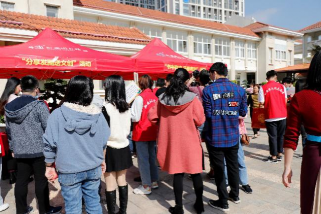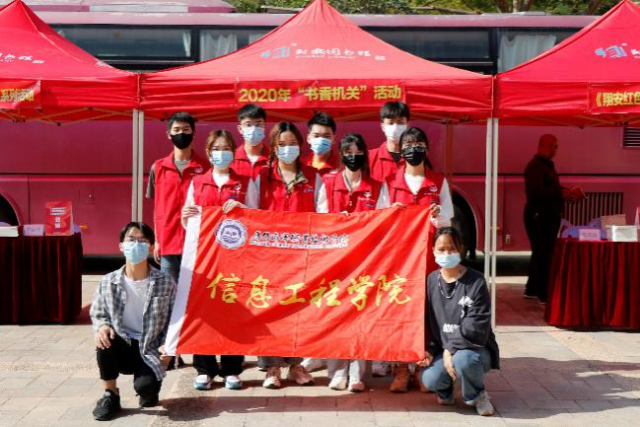近日,在翔安区四届人大六次会议、政协四届五次会议召开之际,信息工程学院志愿者来到翔安区政府,协助翔安图书馆工作人员开展“书香翔安”2020年全民读书月系列活动之“书香机关”宣传活动。