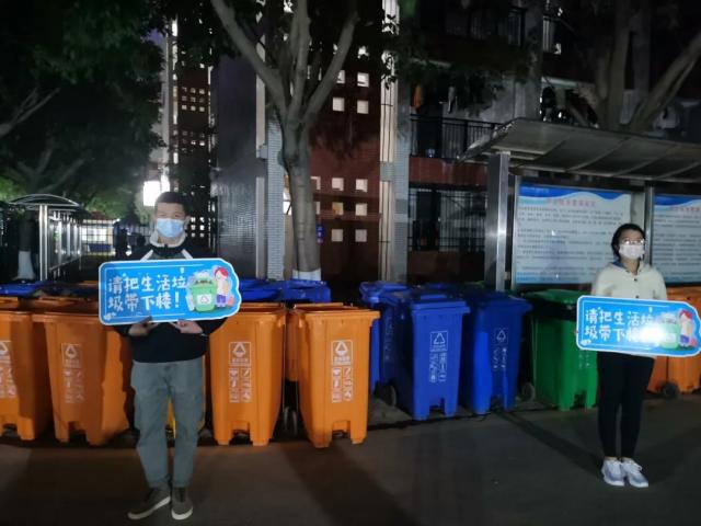 为响应学校生态文明教育工作要求,践行“创新、协调、绿色、开放、共享”的生态文明教育理念,党建带团建的志愿者们持续开展垃圾分类督导和宣传活动,齐抓共管,共建美丽校园。
