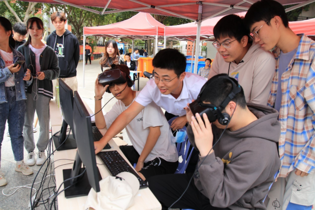 开幕式结束后,与会领导与学子们一起参观了各个协会的科技文化成果展成果,欣赏了数字媒体应用技术专业的学生平面和VR作品,同学们还能通过二维码观看校园全景,感受来自科技创新、人文创意的震撼与魅力。