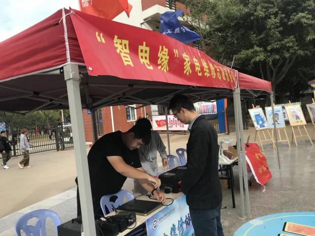 “智电缘”和计算机维护志愿服务队为师生带来的故障电磁炉、笔记本等电器进行故障排查,用自己所学专业帮助师生解决实际的困难,展现了同学们专业的技能水平。
