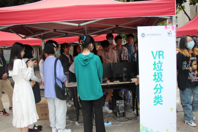 厦门风云教育有限公司和数媒教研室党支部利用虚拟现实(VR)技术在欢乐的游戏环节中让同学们沉浸式学习“垃圾分类”的相关小窍门,同时让大家身处真实的生活场景之中,锻炼将各式各样的垃圾进行分类投放,助推形成校园垃圾分类新风尚。