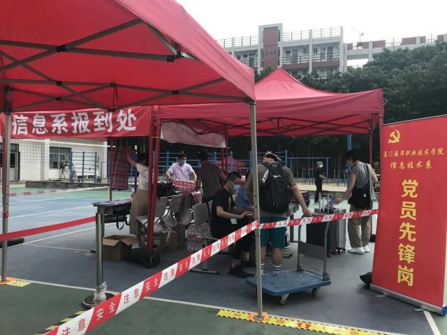 信息技术系立起党员先锋岗,系党总支书记王火灵、系主任林晓鹏带头走在前,全程坚守在一线指挥。党员教师在火车站接站,在报到现场测量体温、登记信息,在学生公寓帮助学生搬运行李。学生党员在教室协助辅导员分发毕业证书、在校园内帮助同学运送行李。全系党员用实际行动践行党员职责,诠释党员的初心使命。
