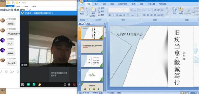 教研室其他8位老师均表示能克服困难,尽力完成网络授课任务,并围绕线上教学踊跃交流发言。大家认为目前线上教学工作整体较好,教学平台如职教云、腾讯课堂、QQ群视频日渐稳定,功能逐步扩展,师生互动较好,大部分学生学习状况佳,但也发现个别学生挂机现象。老师们对存在的问题,特别是返校后的课程衔接提出了许多合理化建议。