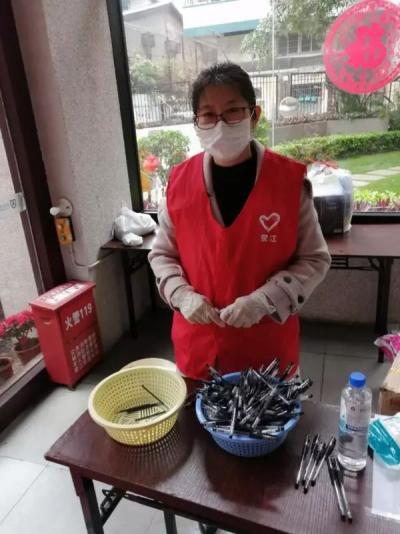 2月14日下午,张会奇老师参加禾祥西社区疫情防控志愿活动,协助新家园小区物业做居民出入体温测量,分发告知书、承诺书,提醒居民戴口罩。为小区居民制作按电梯用的酒精棉笔,防止居民乘坐电梯出现交叉感染。两个多小时的志愿服务,张老师一直佩戴口罩和手套,因为手套是一次性的塑料手套,佩戴不久手套内就会出现很多水汽而给人不适。张老师深深敬佩一线的医护人员,他们每天穿着厚重的防护服达十几个小时,其中的辛苦可想而知。张会奇老师说,做好个人防护,为一线人员减少可能的工作量,是这场防疫战“疫”中每个人都应该做到的事情。