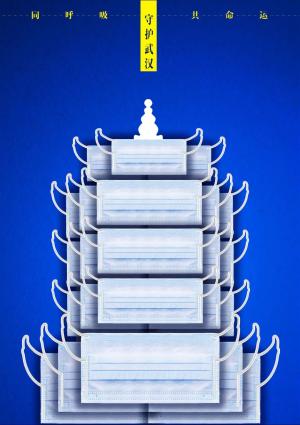 《守护武汉》作品以“心系武汉,抗击疫情”为主题,在创意的表现上,选择了最能代表武汉地域特色的黄鹤楼为元素,将医用口罩与标志性建筑重构,表现出了心系武汉,为武汉加油,增强全民抗“疫”的决心和信心。