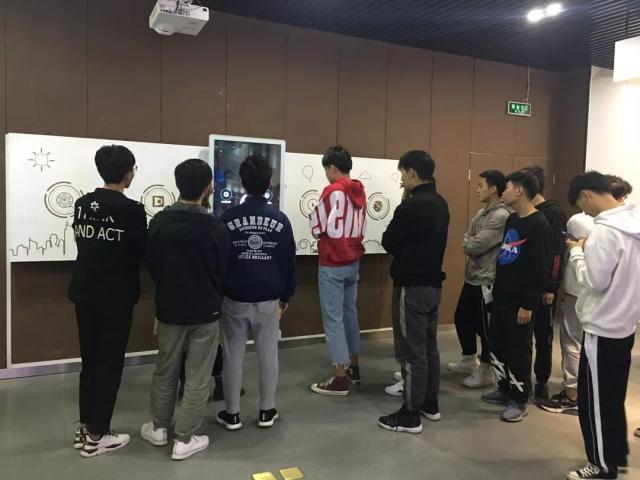 在风云科技公司谢老师带领下,师生一行先后参观了全息柜、体感游戏区,感受了魔镜、通电玻璃、VR智慧体感导览/互动体感,观看了滑轨电视和私人影院/全景声立体影院。