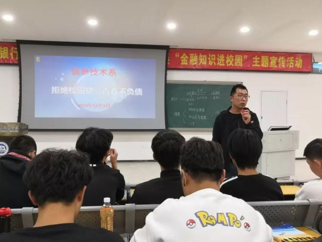 12月3日,信息技术系团总支书记庄亚民在翔安校区为系2019级学生作《拒绝校园贷,不欠青春债》防诈骗主题宣讲。