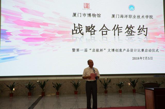 7月5日上午,我院与厦门市博物馆战略合作签约仪式暨第一届“启航杯”文博创意产品设计比赛启动仪式在厦门市博物馆举行。我院党委副书记汤忠民、厦门市博物馆馆长张仲淳、副馆长林元平、厦门友渡文化传播有限公司负责人陈勇辉、厦门浮古科技有限公司代表周朝龙出席仪式。
