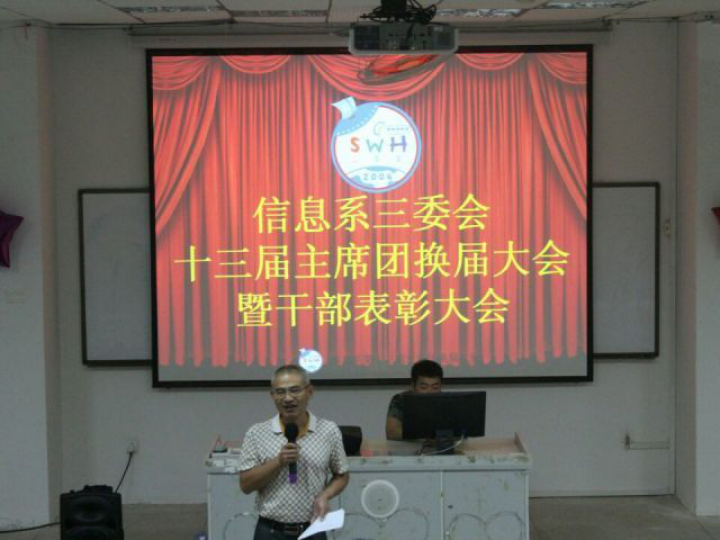 大会开始后,由庄亚民代表信息系团总支进行致辞,他总结一年来信息系取得的成绩,感谢信息系三委会所有干部、干事一年的付出和努力,希望全体三委会成员能继续发挥优良传统把信息系三委会工作做强、做大、做出特色。