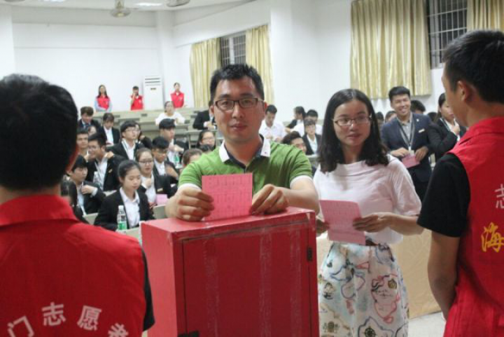 10月11日,我院信息系于翔安校区T1举行第十四届主席团换届暨干部表彰大会,会上邀请了信息系党总支书记王火灵,团总支书记庄亚民,团总支副书记谢玲及三委会干部、储干到场。