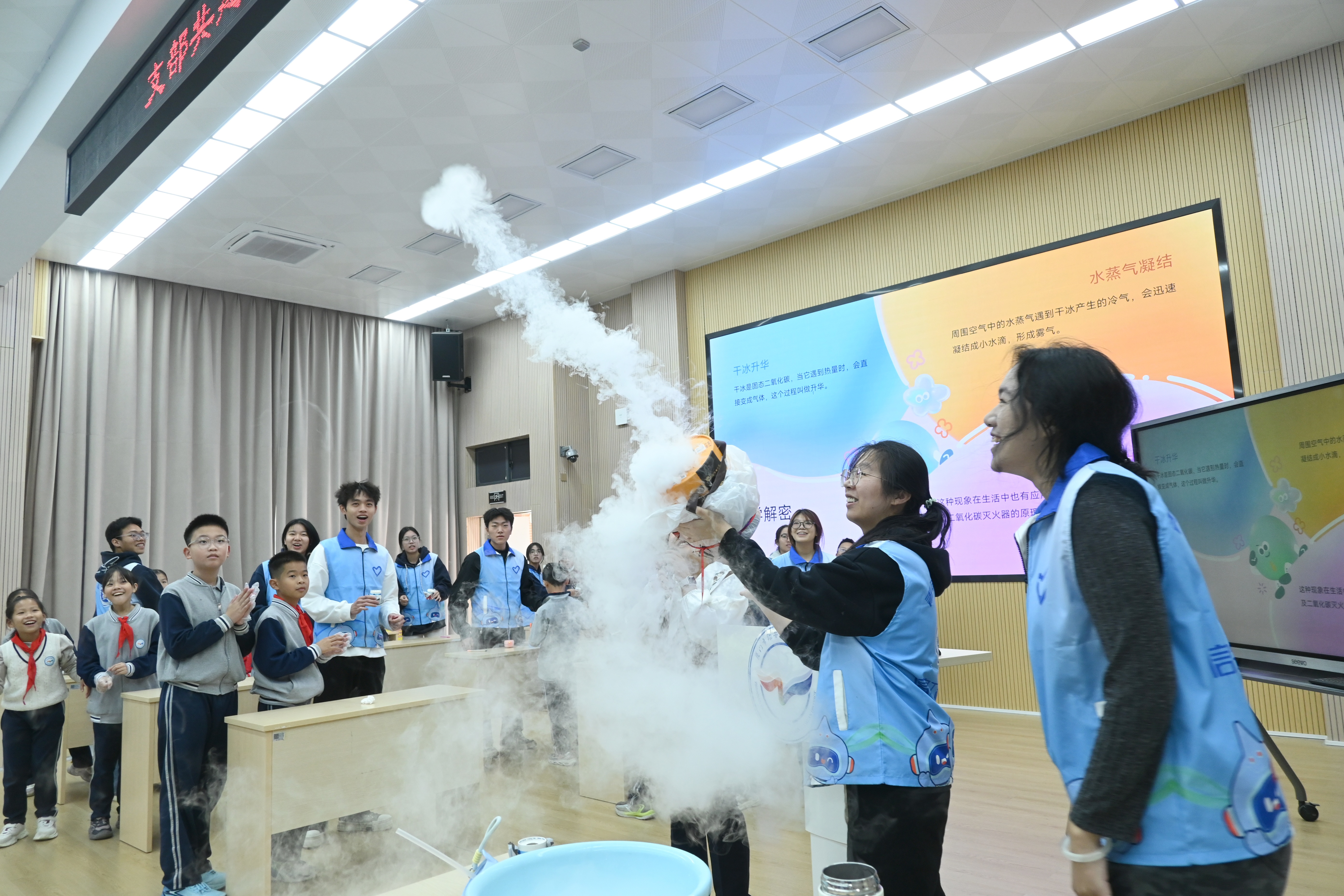现场互动精彩纷呈:无人机编队飞行点亮天空,水下机器人、无人船航行演示展现出海洋科技的魅力,VR体验、3D打印等项目也让孩子们动手探索、笑声不断。面向五年级学生的《水的魔法世界》科普讲座,深入浅出,激发思考。