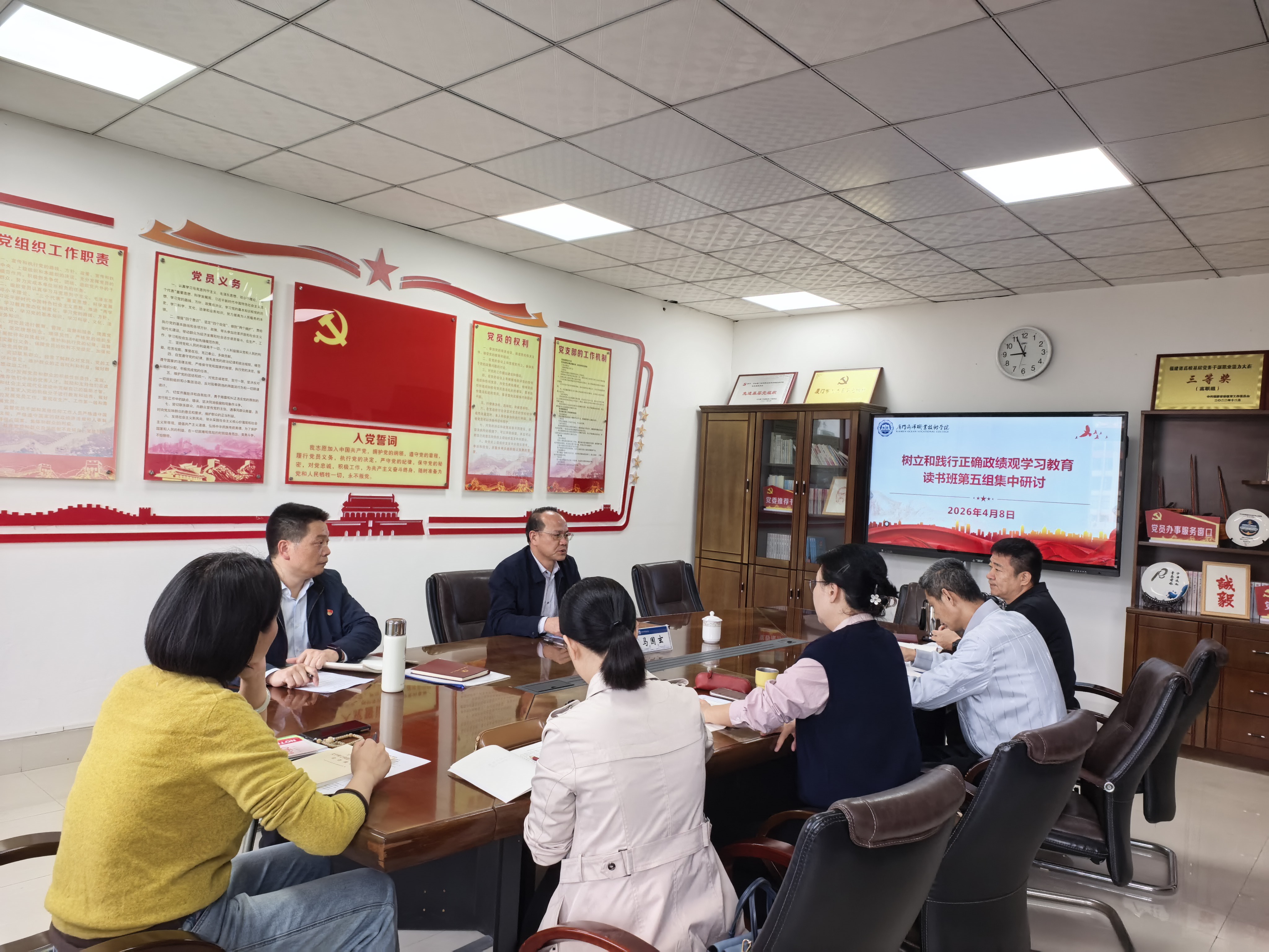 4月8日上午,树立和践行正确政绩观学习教育读书班第五组在嘉则楼401会议室举行第一次集中研讨交流。校党委委员、副校长马国玄主持会议并做讲话,读书班第五组全体成员参会。