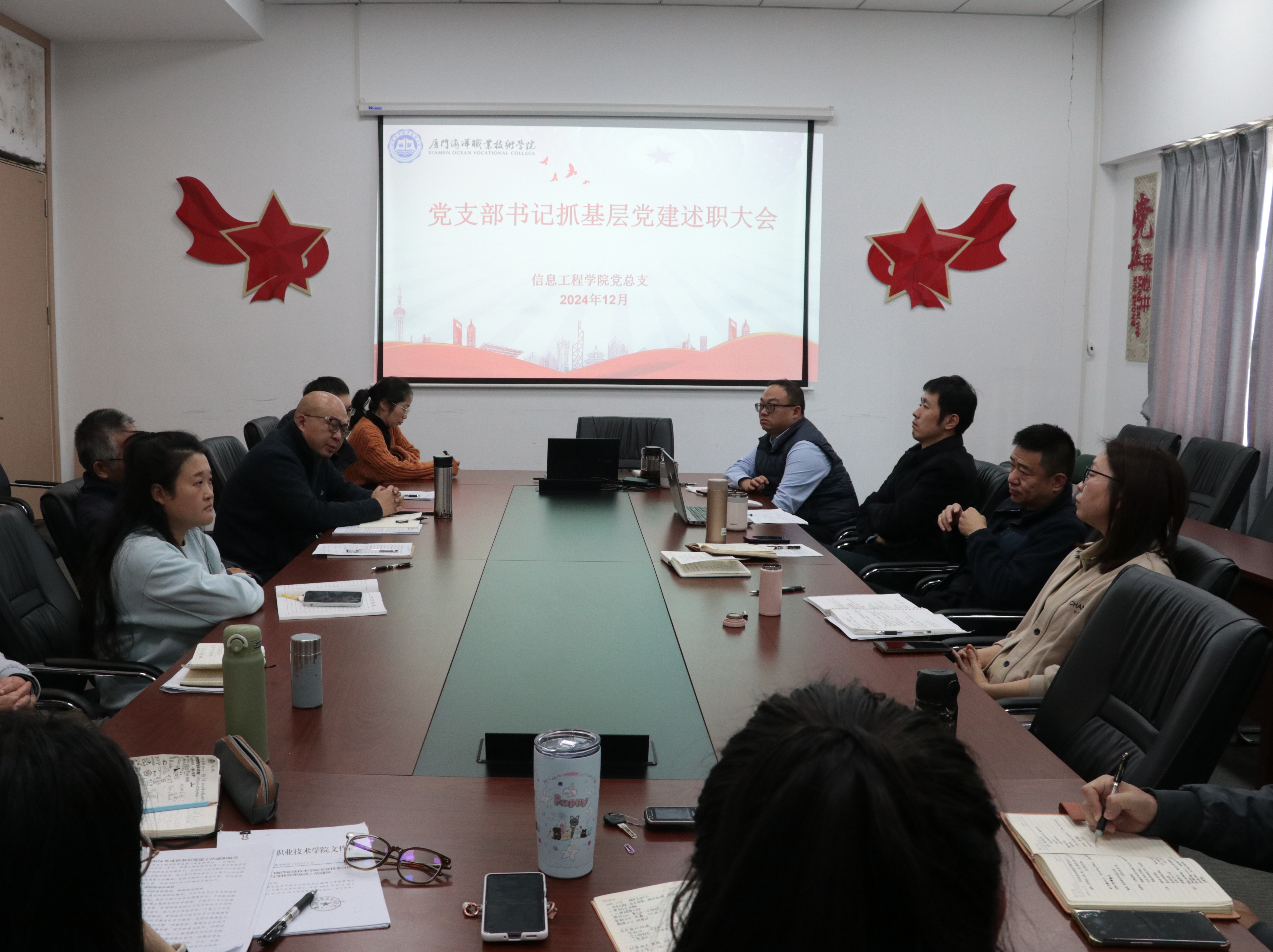 12月17日,信息工程学院召开了2024年度党支部书记抓党建工作述职评议工作会,党总支书记谢世煊主持会议,党政班子成员出席会议。
