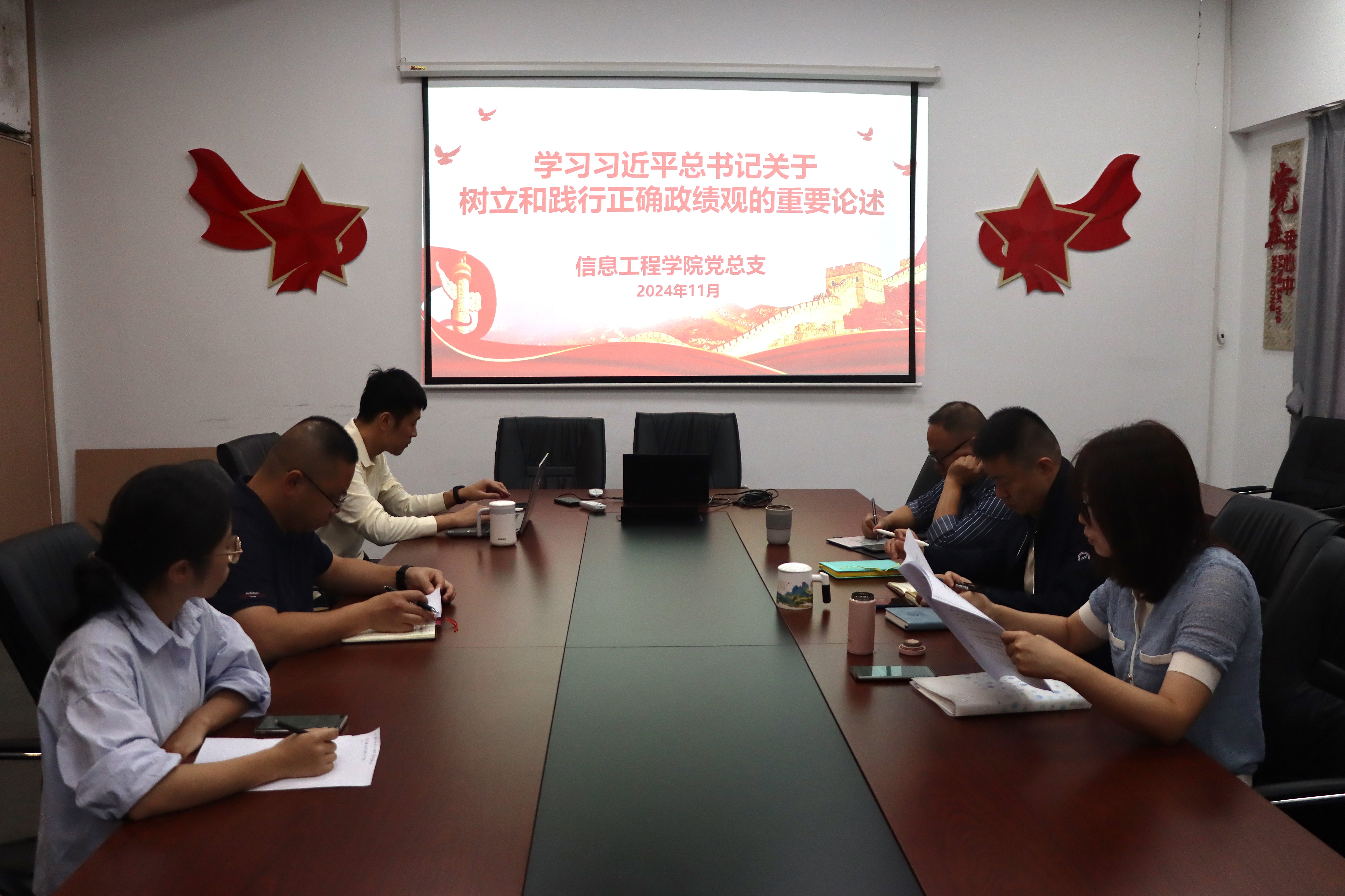 11月18日,信息工程学院党总支召开干部会议,专题学习习近平总书记关于树立和践行正确政绩观重要论述和重要指示批示精神。