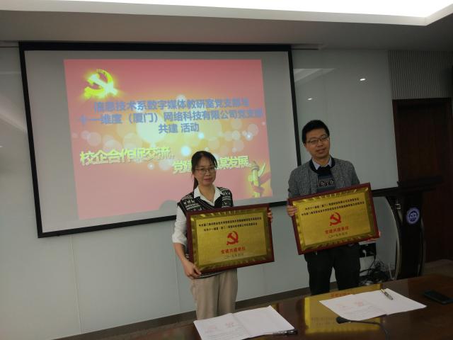 校企合作促交流 党建共建谋发展 ——数媒教研室党支部与十一维度(厦门)网络科技有限公司党支部签约共建