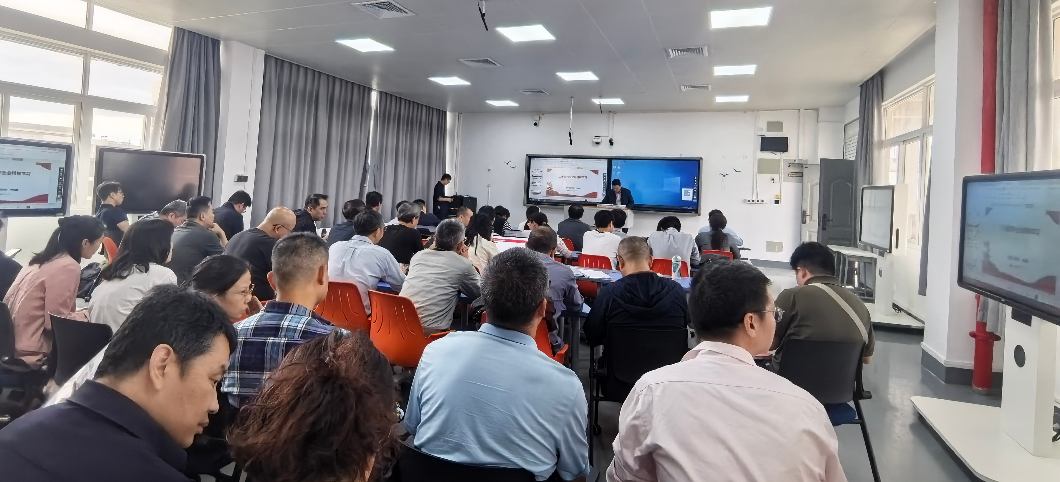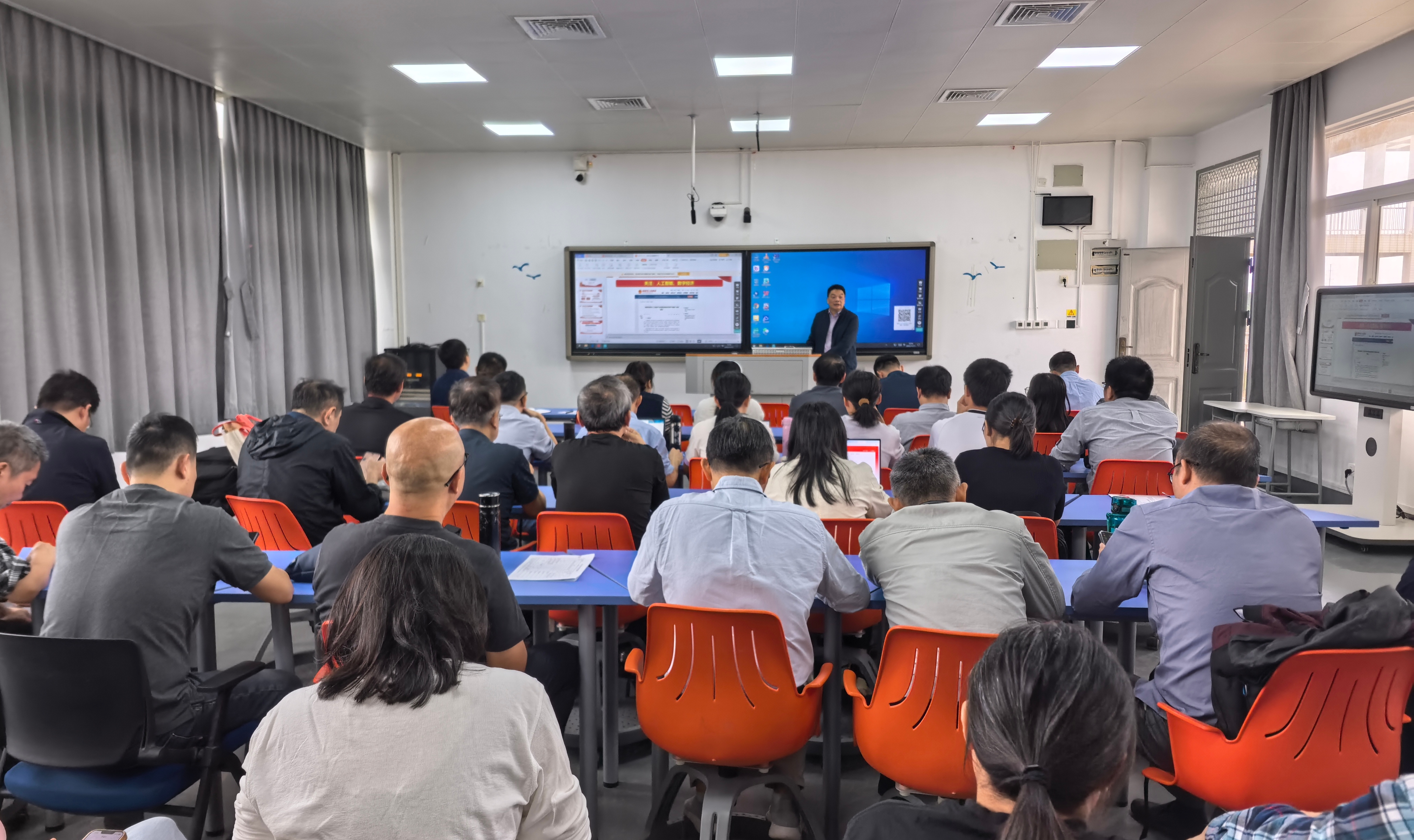 2025年11月11日,信息工程学院党总支书记林晓鹏在翔教1503面向全体教职工,开展党的二十届四中全会精神专题宣讲。