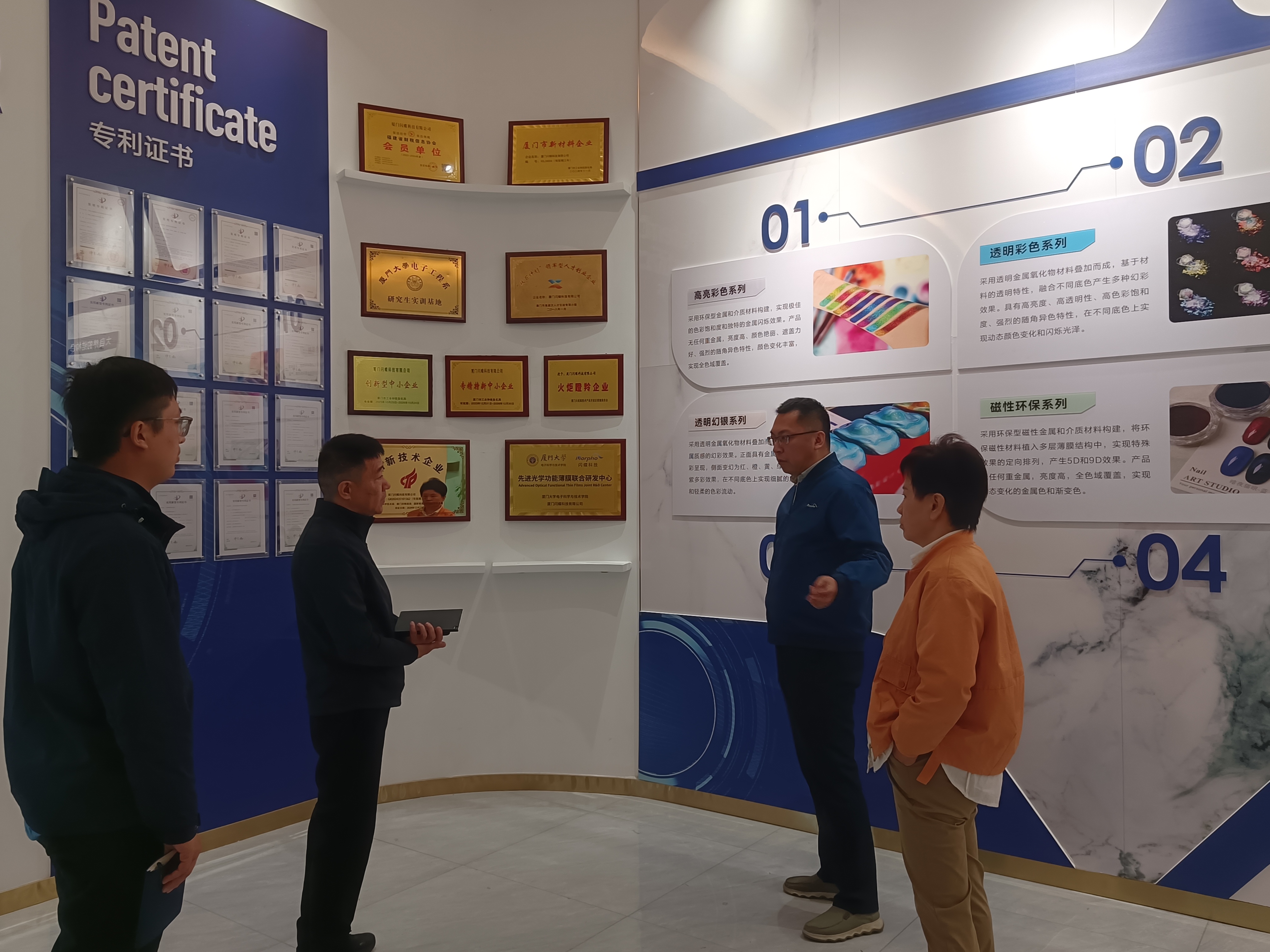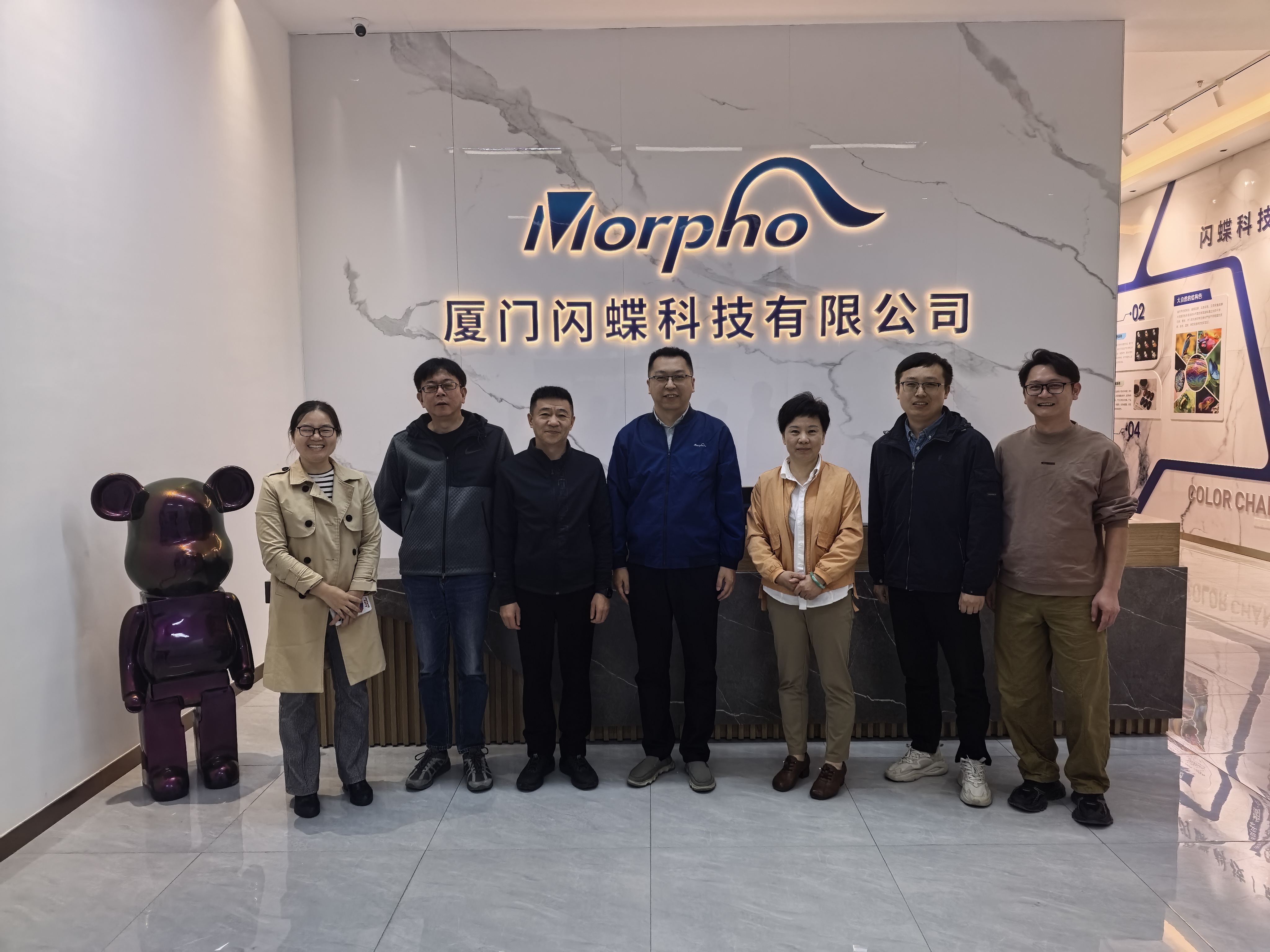 闪蝶科技总经理段立花、技术总监卜轶坤就企业在彩色微纳结构薄膜的研发、生产及数字化改造方面的技术需求与人才缺口作了详细介绍。信息工程学院院长郭健则结合学校深厚的海洋学科背景,阐述了学院专业在交叉学科建设与人才培养方面的特色与优势。校企双方进行了深入交流与探讨,并在多个关键领域达成合作共识。未来将聚焦于共建研发平台、共研前沿课题、共育技术人才、共拓就业渠道,携手构建产教融合的新范式。