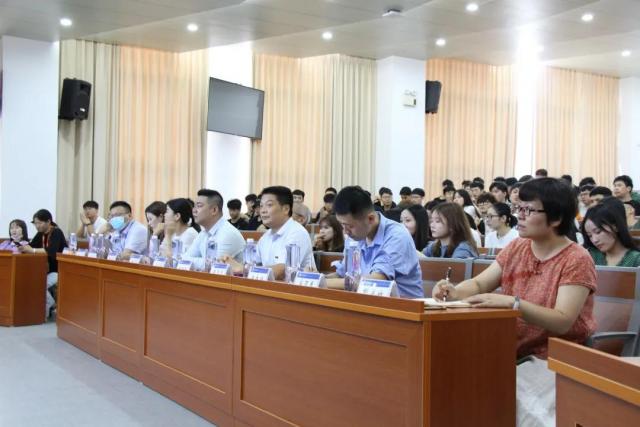 赠旗仪式结束后,公司事业部总监江丽萍介绍了公司的发展情况、职业发展方向、企业文化、今年校招岗位的需求等,与到场学生开展互动。