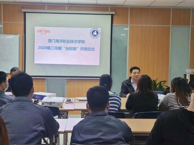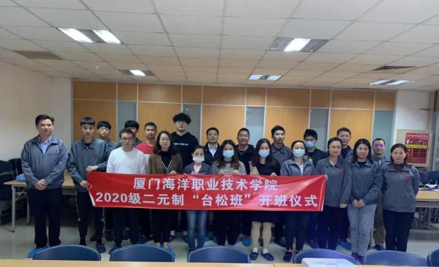 12月16日,我院和厦门台松精密电子有限公司共同举办的电子信息工程技术专业“二元制”新生开班仪式在公司举行,台松电子管理部邹祖全经理等企业领导,和我院林晓鹏院长、张志杰副院长、谢世煊副书记以及“二元制”2020级12名新生参加了开班仪式。