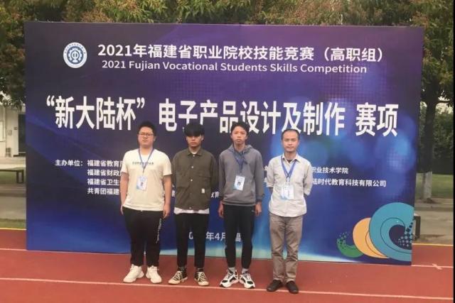 4月2日,在2021年福建省职业院校技能大赛“电子产品设计及制作”赛项中,我院由黄心宇和李伟权老师指导,姜小龙、林德康、刘超同学组成的代表队荣获团体二等奖。