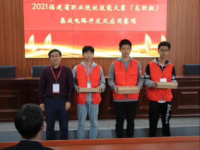 4月6-7日,2021年福建省职业院校技能大赛(高职组)“百科荣创杯”嵌入式技术应用开发、“朗迅杯”集成电路开发及应用两赛项在我校翔安校区开赛。我院代表队在两个赛项中凭借出色的发挥,均获得第一名的佳绩。