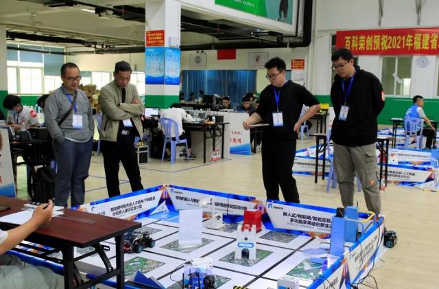 赛事期间,学校还邀请来自业界的百科荣创(北京)科技发展有限公司、杭州朗迅科技有限公司、福建利利普电子科技有限公司、厦门裕禾深蓝电子科技有限公司、福建时创电子科技有限公司、厦门润轩科技有限公司、厦门汇浩教学设备有限公司等企业开展了丰富多彩的校企交流活动。