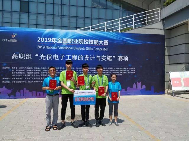 62日,2019年全国职业院校技能大赛高职组“光伏电子工程的设计与实施”赛项在河南许昌职业技术学院举行,由我系吕月惠、许万里老师指导,光电3162班林腾伟、赖志龙、智能3172班黄超顺等3名同学组成的代表队荣获该赛项团体一等奖,为学院再添一块国赛金牌。吕月惠、许万里老师同时荣获“优秀指导老师”。