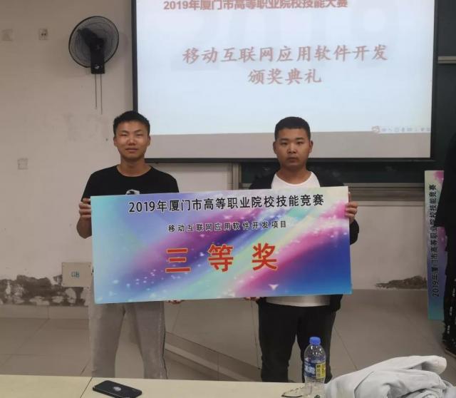 11月2日,厦门市教育局主办的2019年厦门市高职院校技能竞赛“移动互联网应用软件开发”赛项在厦门软件职业技术学院举行,信息技术系学生蔡建东、王鼎铭和张晓锋在指导老师林志谋和叶炼炼的带领下,与来自厦门市各高职院校共15支队伍同场竞技,最终荣获三等奖。