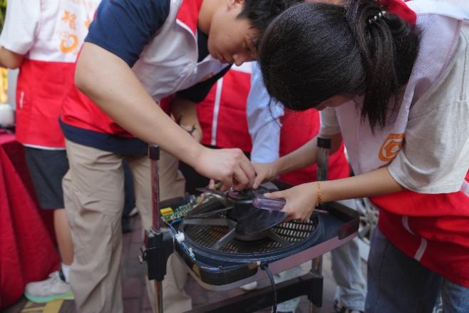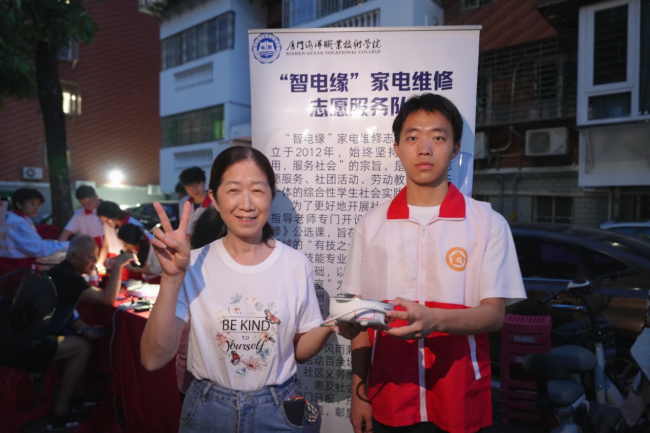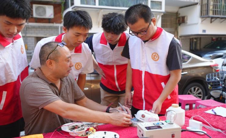 近日,“智电缘”家电维修协会走进厦门湖里南山新村小区,积极参与“春晖益邻”社区便民服务活动,将实训课堂搬到社区一线。通过维修电饭煲、电风扇等常用小家电,同学们不仅锤炼了“精于工、匠于心”的专业技能,更在服务中深刻体悟到“劳动创造价值”的内涵与意义。
