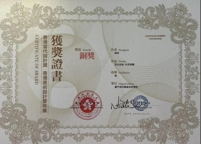 2020年12月15日,由香港艺术发展局和香港美术设计协会主办的香港当代设计奖暨香港美术设计双年展获奖结果揭晓。我校信息工程学院陈思老师的作品《众志成城共克时艰》,经过香港中文大学、香港岭南大学、香港室内装饰协会、香港理工大学建设及环境学院、HONG KONG EDC CREATIVE GROUP等评审的评选后,荣获铜奖。