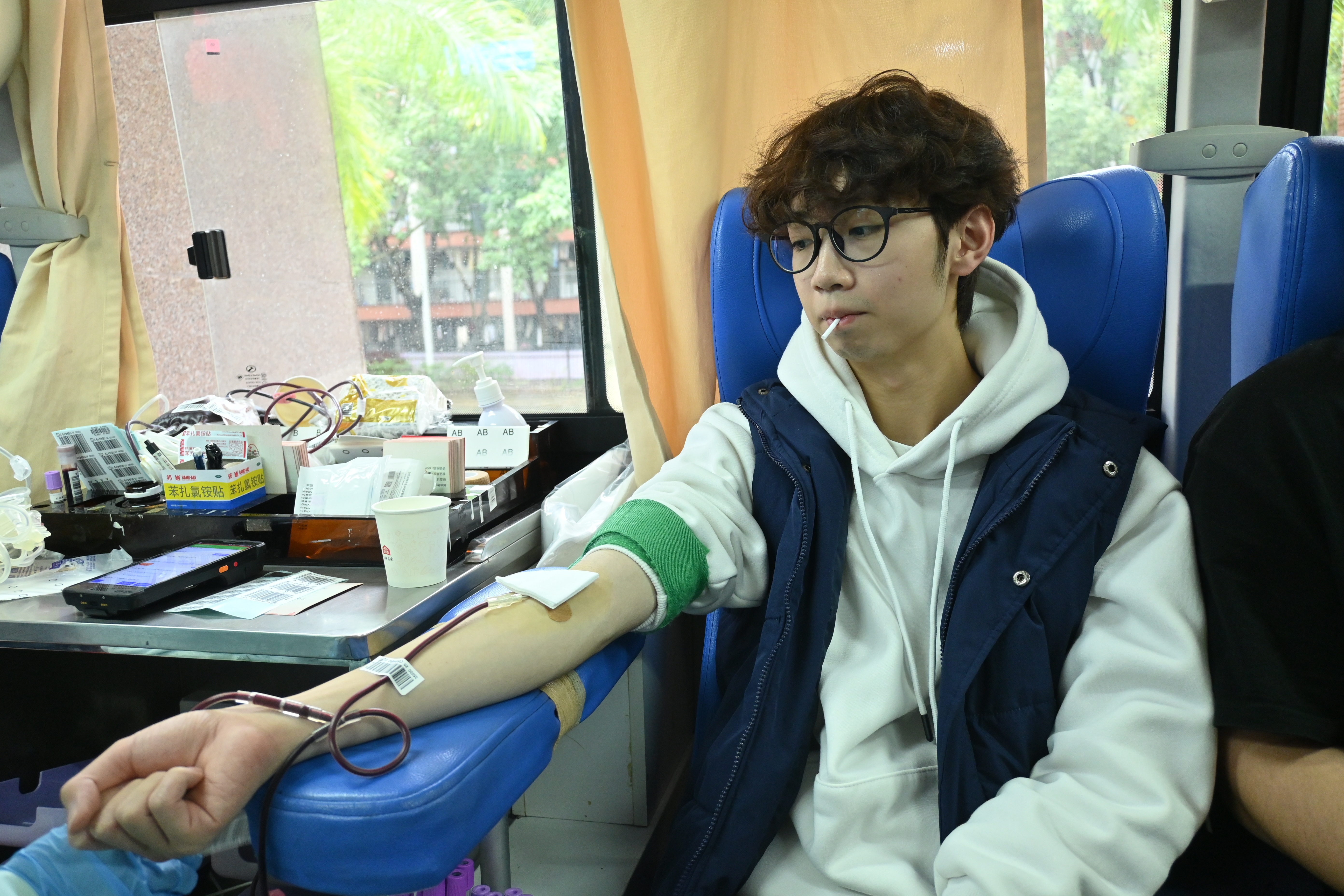 电子3251郑泽鑫:一开始献血前还有点小紧张,但献完后发现献血原来这么简单,一袋血就能传递一份希望,能为陌生人出份力,觉得做了件超有意义的事,真的很值。