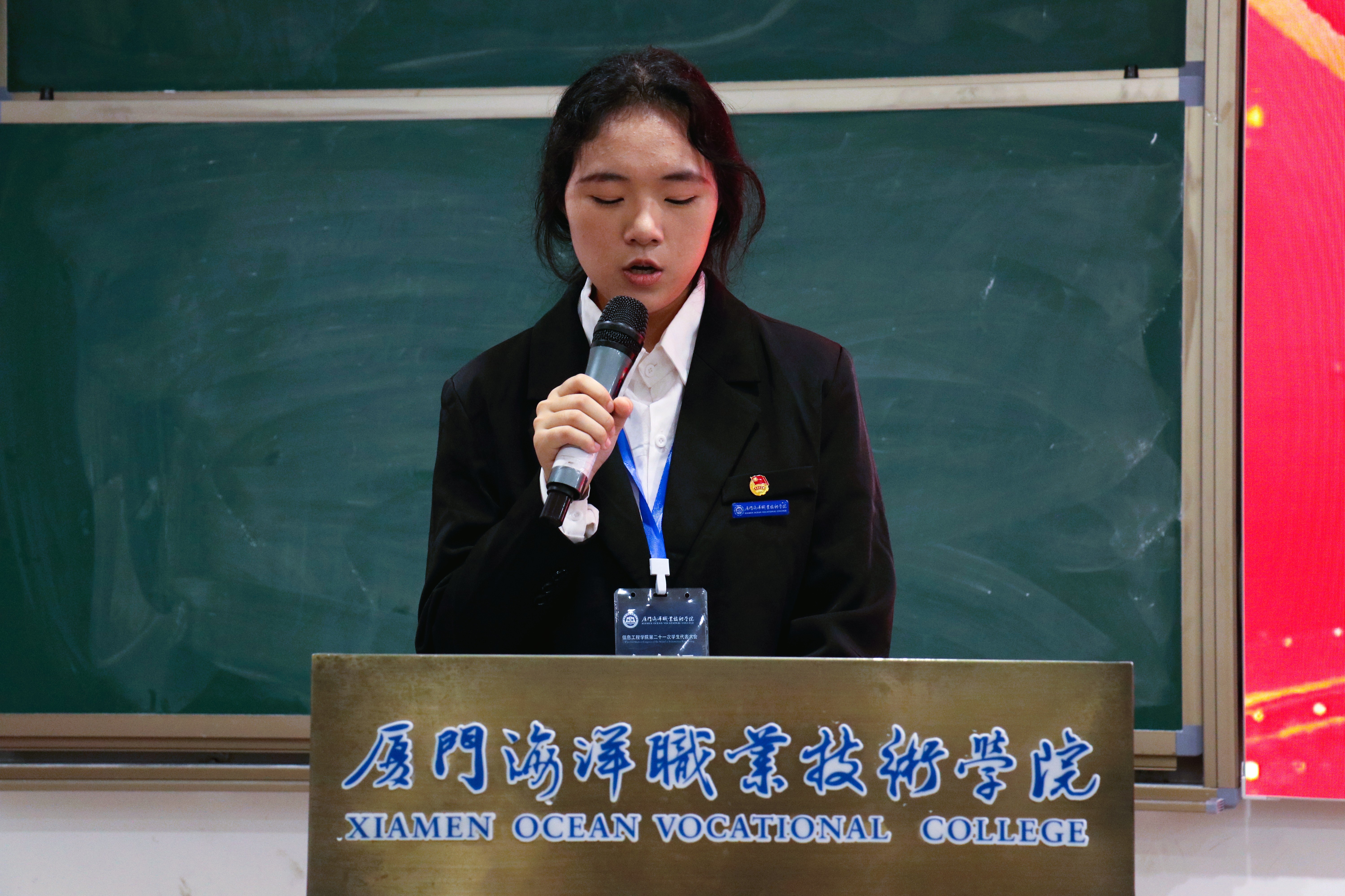 11月12日,厦门海洋职业技术学院信息工程学院第二十一次学生代表大会圆满落幕。校团委副书记黄昆仑、学院党总支副书记郑杰辉及辅导员出席本次会议。