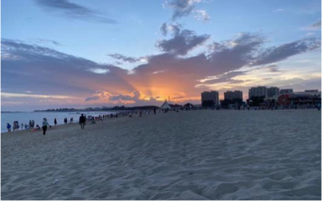 为了维护西沙湾的沙滩环境,为了丰富自己的假期生活,我与朋友相约,人手一垃圾袋,到海边捡垃圾。退潮的海滩上有些是随海水涨潮飘来的树枝,有些是废弃的易拉罐,有些是养鱼区的破旧渔网,从退潮到夜色渐黑,我们手中的垃圾袋也渐鼓。很有成就感的同时也不得不感慨保护环境的重要性。
