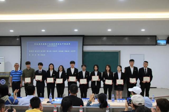 会上,王火灵、林晓鹏为第十五届学生委员会优秀学生干部颁发荣誉证书。