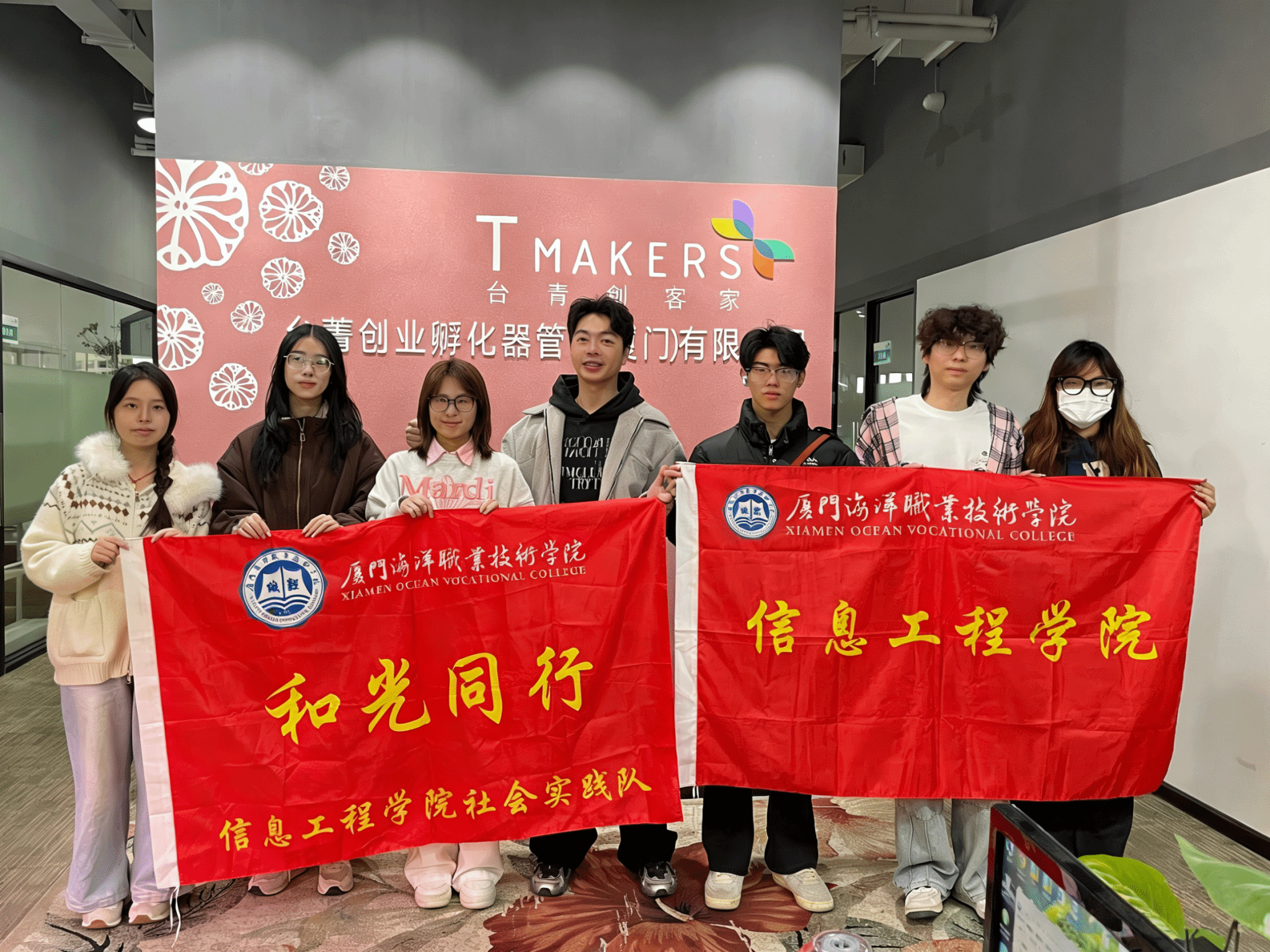 近日,厦门海洋职业技术学院信息工程学院“和光同行”社会实践队围绕“两岸青年交流共创”主题,开展了一系列富有深度与温度的社会实践活动。队员们通过沉浸式的共同体验与紧密协作,生动诠释了“两岸一家亲”的深厚情谊,并在实践中探索出一条以文化认同为根基、以创新共创为动力、以共同未来为目标的青年交流新路径。