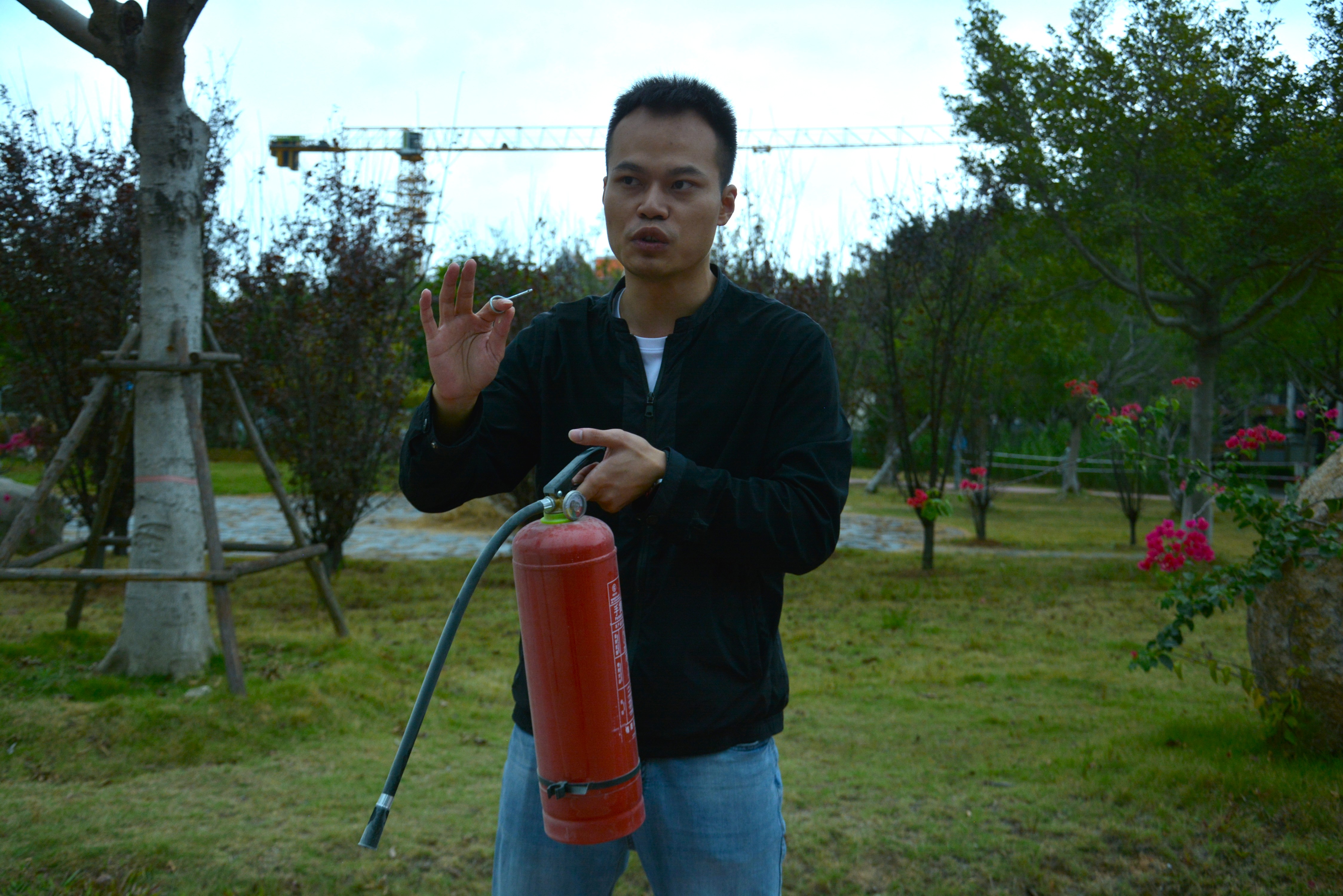 演练中,安全处刘跃祖结合校园实际,用通俗语言讲解了火灾成因、扑救要点及灭火器“提、拔、握、压”操作要领,并现场演示正确使用方法。