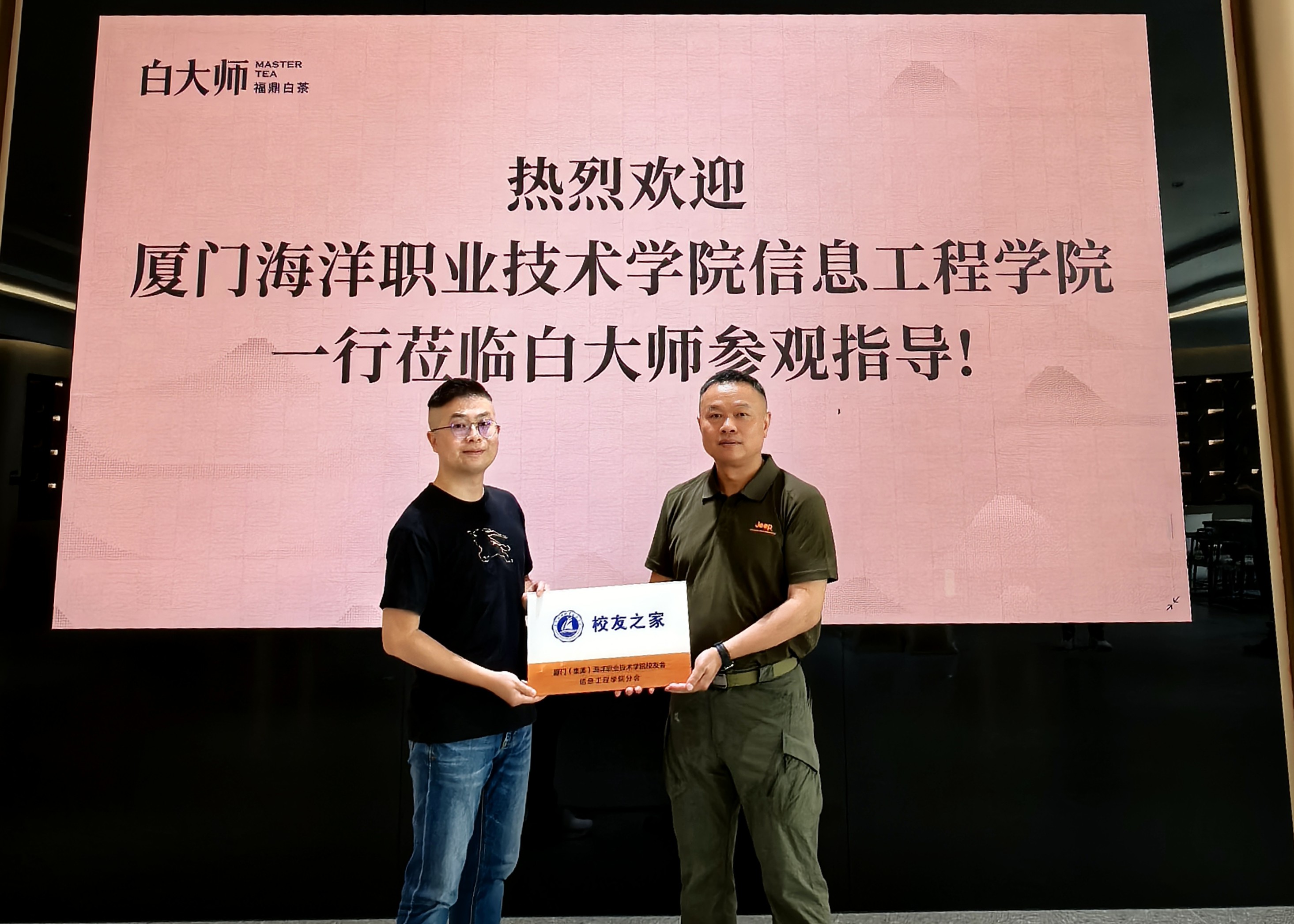 彭生代表校友会信息工程学院分会为福建白大师茶业有限公司授予 “校友之家” 牌匾,这也是继福建煜乘信息科技有限公司的第二个“校友之家” 。信息工程学院以 “校友之家” 为纽带,构建覆盖全市的"校友之家、校友联络点"网络体系,着力打造"母校-校友-社会"三位一体的共赢生态圈,为校友们搭建了一个情感交流、资源共享的平台。