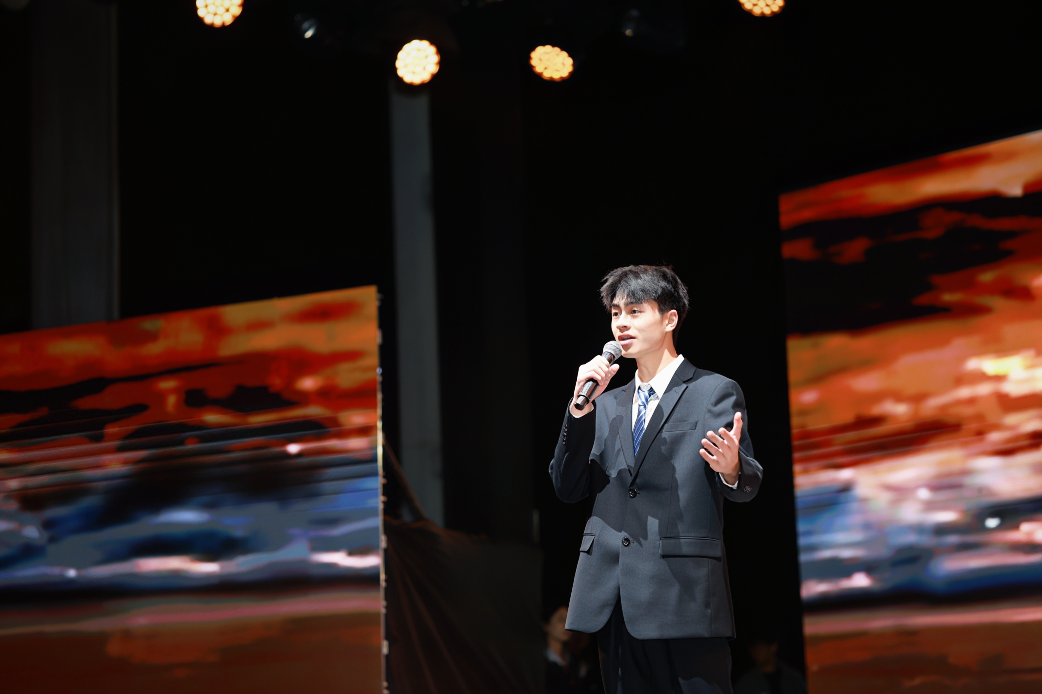 晚会由一支激情澎湃的乐队表演《七里香》震撼开场,瞬间点燃全场气氛。在四位主持人温暖而有力的开场白中,“信息之夜”正式启幕。心有所信,方能远行——这是青春的信仰,也是信息的底色。