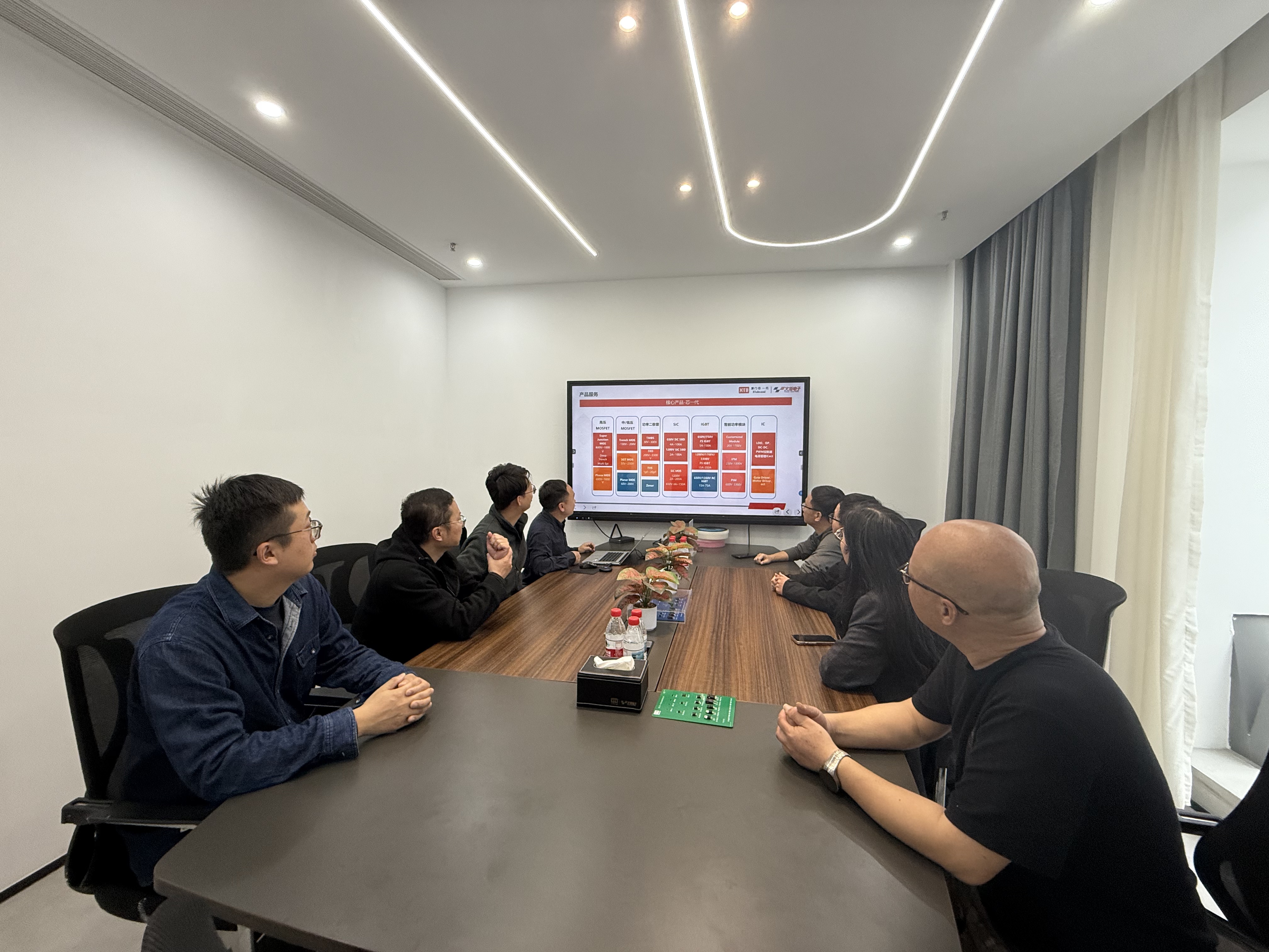 厦门芯一代是专注于功率器件与模拟IC研发的高新技术企业。活动中,教师们深入研发与生产一线,近距离了解MOSFET、SiC等前沿功率器件的研发进展,通过与企业技术专家交流,系统复盘寒假实践成果,探讨如何将产业前沿技术与教学环节有机融合,破解"学用脱节"难题。